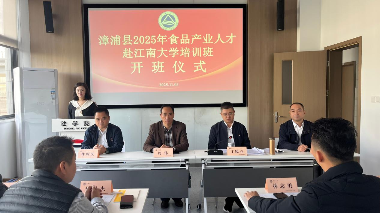 2025年11月3日上午,漳浦县2025年食品产业人才培训班开班仪式在江南大学举行。此次培训旨在进一步提升漳浦县食品产业人才的专业素养与创新能力,推动地方食品产业高质量发展。中共漳浦县委副书记丁晓亮,漳浦县食品工业协会会长林炳义,漳浦县工业和信息化局二级主任科员陈绍龙,以及江南大学继续教育学院副院长周伟出席开班仪式。