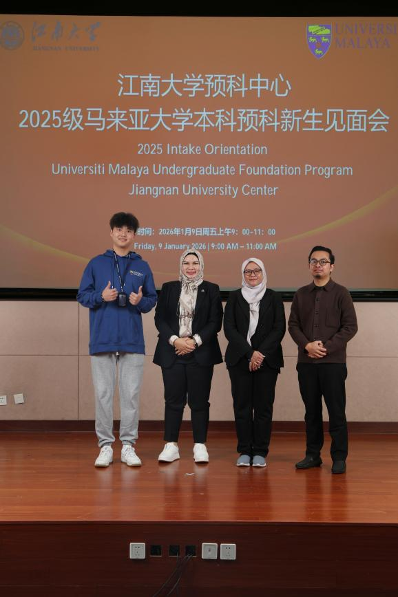 1月9日上午,江南大学预科中心2025级马来亚大学本科预科新生见面会在江南大学远东报告厅举行。马来亚大学学术与国际事务副校长Hasniza Zaman Huri、预科中心主任Farazila Yusof、质量管理部主任Amalina Muhammad Afifi、学术服务部主任Normuhaini Ab. Roni、语言学院院长Surinderpal Kaur、我校继续教育学院院长王育红、副院长惠恭健、终身教育管理中心综合办主任黄继忠等出席了本次活动。本次见面会由惠恭健副院长主持。