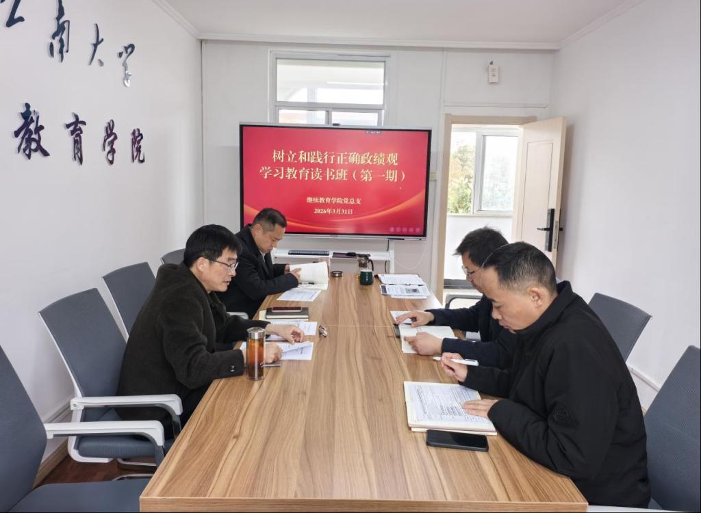 3月31日上午,根据继续教育学院党总支树立和践行正确政绩观学习教育的总体安排,党总支理论学习中心组在210会议室举办学习教育读书班第一期集中学习,深入学习习近平总书记关于树立和践行正确政绩观的重要论述。读书班由党总支书记张文主持,党总支理论学习中心组全体成员参加。