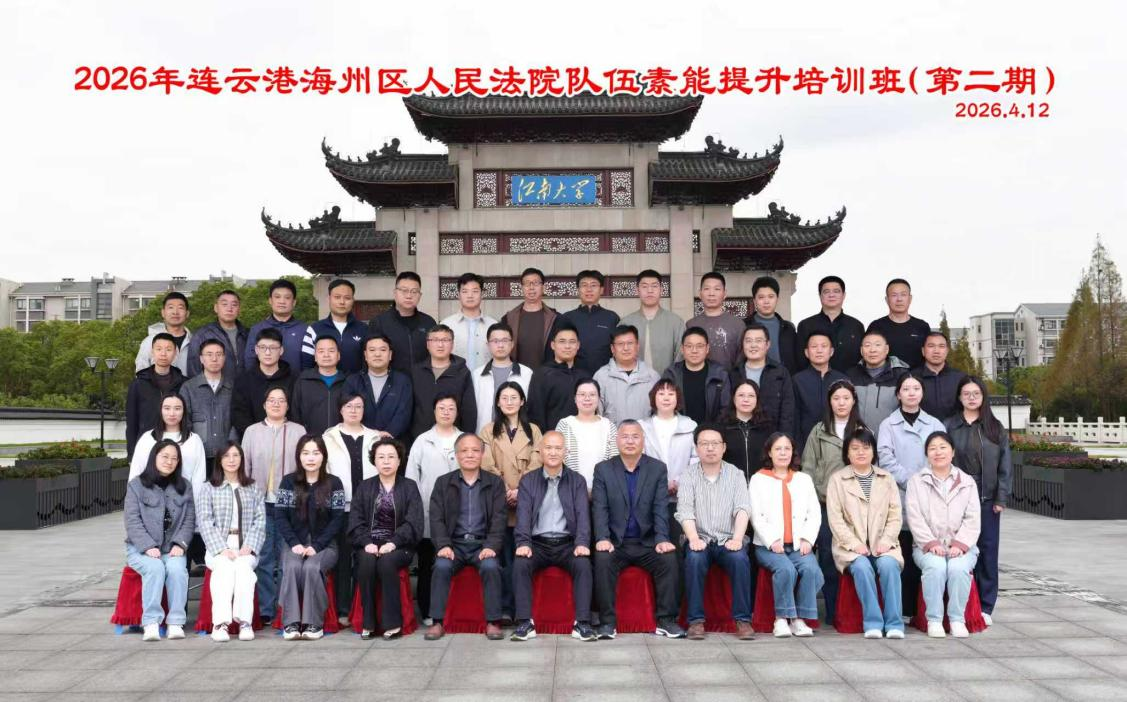 2026年4月12日,连云港市海州区人民法院队伍素能提升培训班在江南大学文浩馆313正式开班。连云港市海州区人民法院党组成员、副院长王统松,江南大学继续教育学院培训中心主任王红星出席开班仪式。