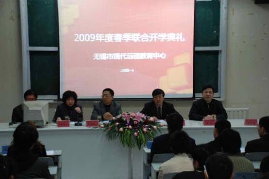 2009年4月6日上午,无锡市现代远程教育中心09年春季联合开学典礼在无锡市广播电视大学2号楼多功能厅隆重举行,来自全市300多名学员参加了开学典礼。市教育局领导和江南大学等5所高校网络教育学院院长出席典礼并致辞。
