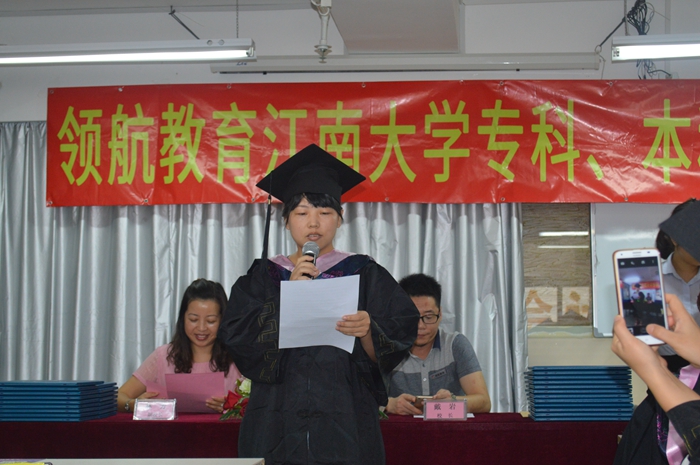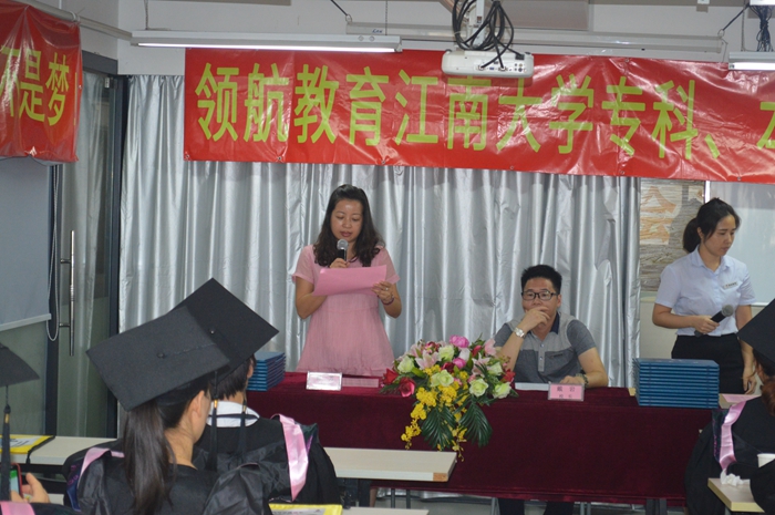 首先,由领航教育副校长林老师发言。林老师对参加典礼的40余名同学表示了热烈的祝贺,并充分肯定了他们学习进取的精神,赞扬他们的明智眼光——选择了江南大学网络教育。