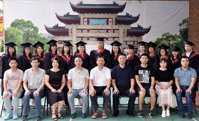 最后,学习中心老师与毕业生合影留念。温馨的毕业典礼圆满结束,也为同学们两年半的的学习生活画上了圆满的句号。