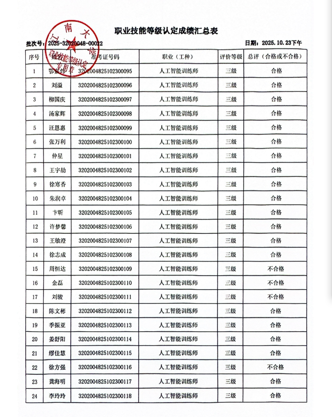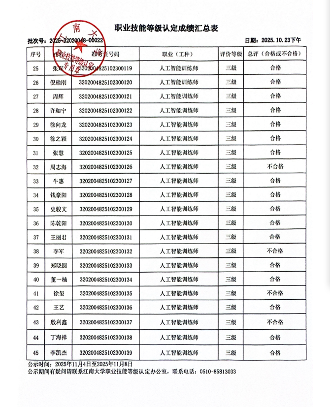 2025年江南大学职业技能等级认定结果公示(00022次)