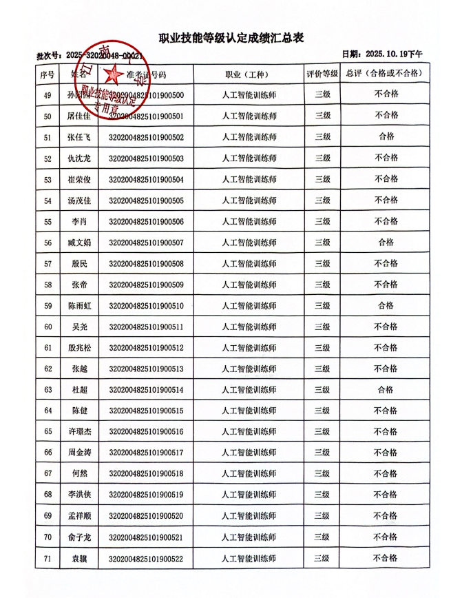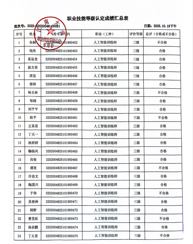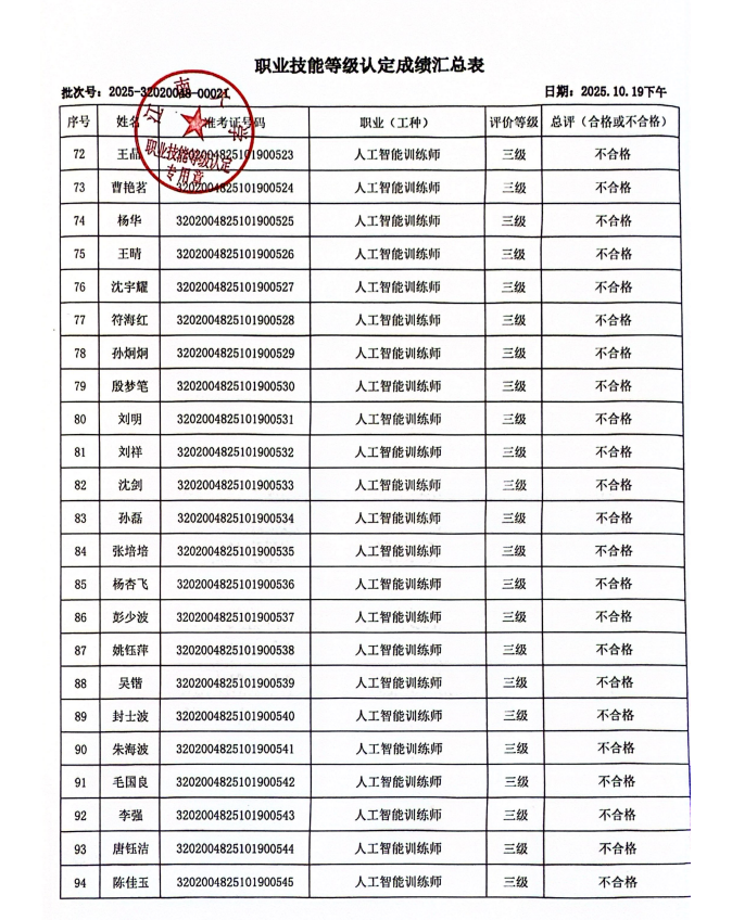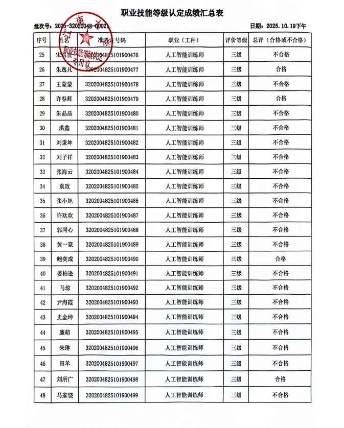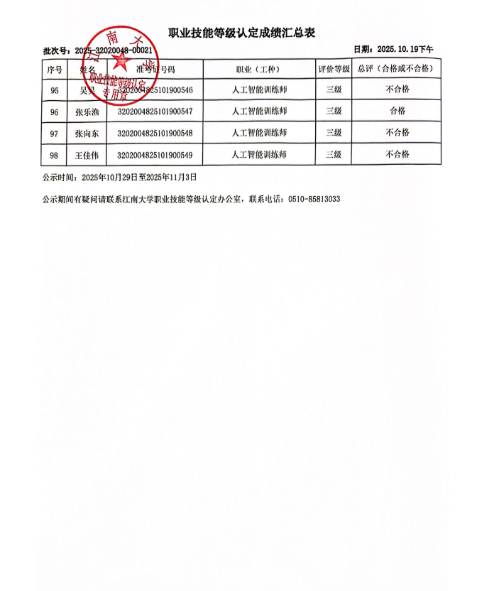2025年江南大学职业技能等级认定结果公示(00021次)
