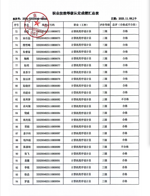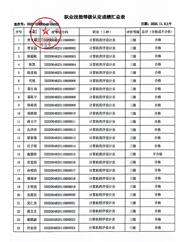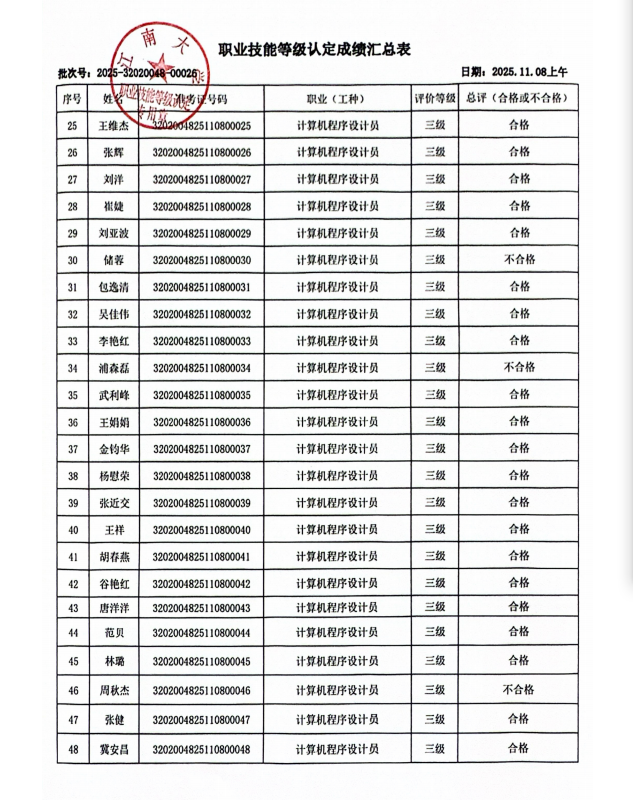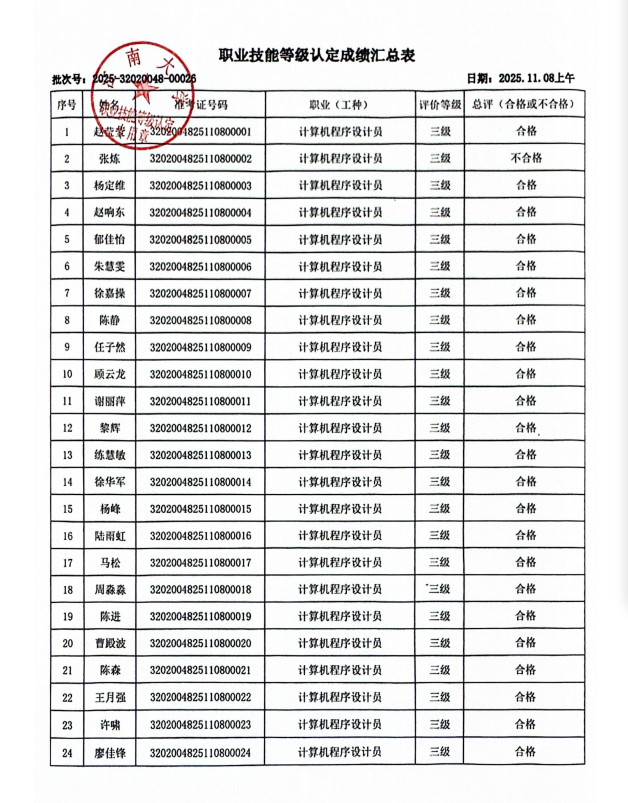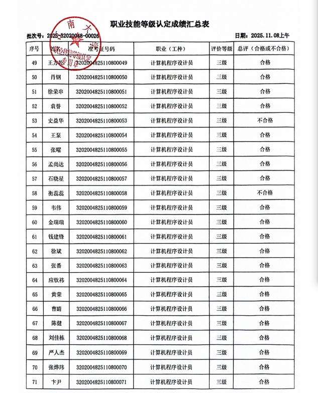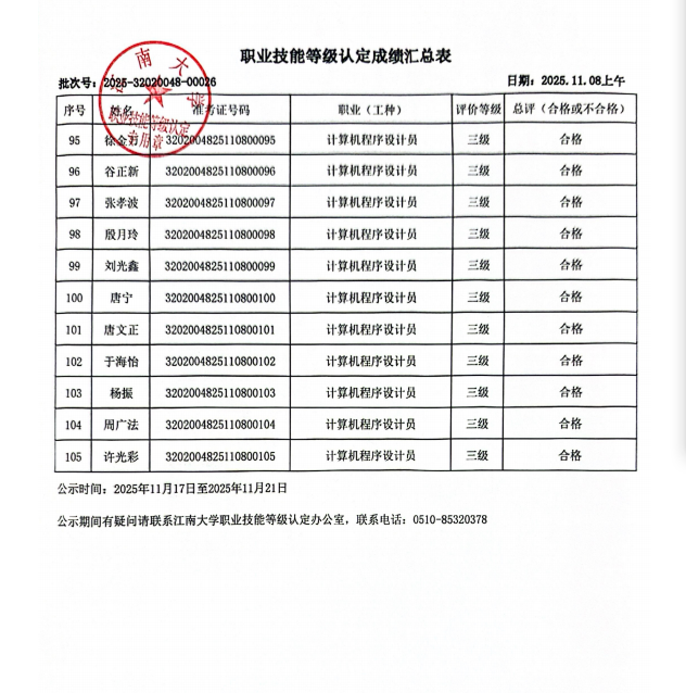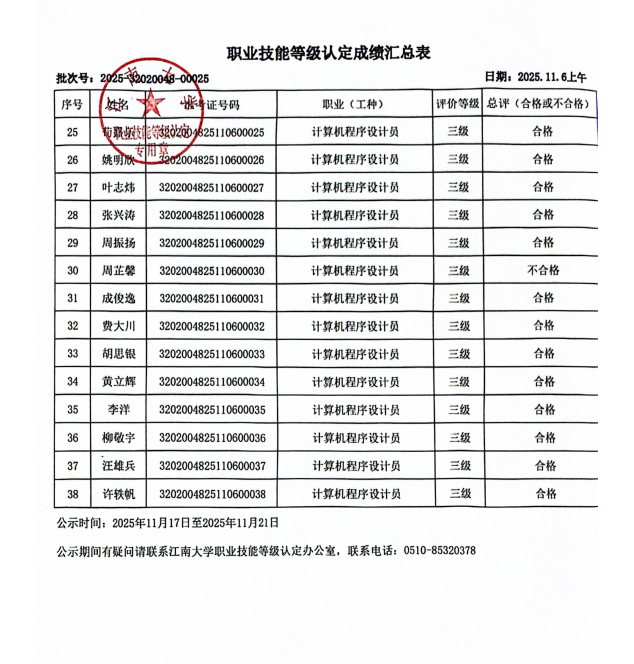 2025年江南大学职业技能等级认定结果公示(00025,00026次)
