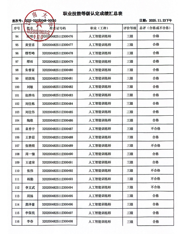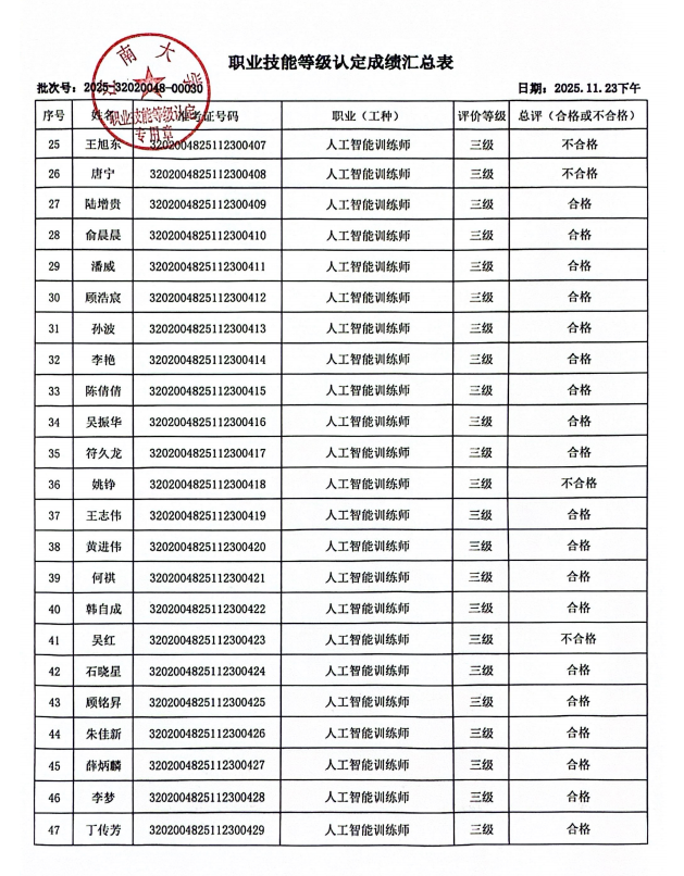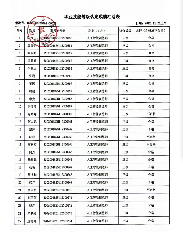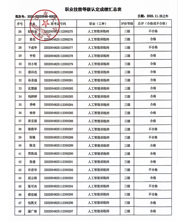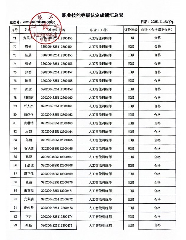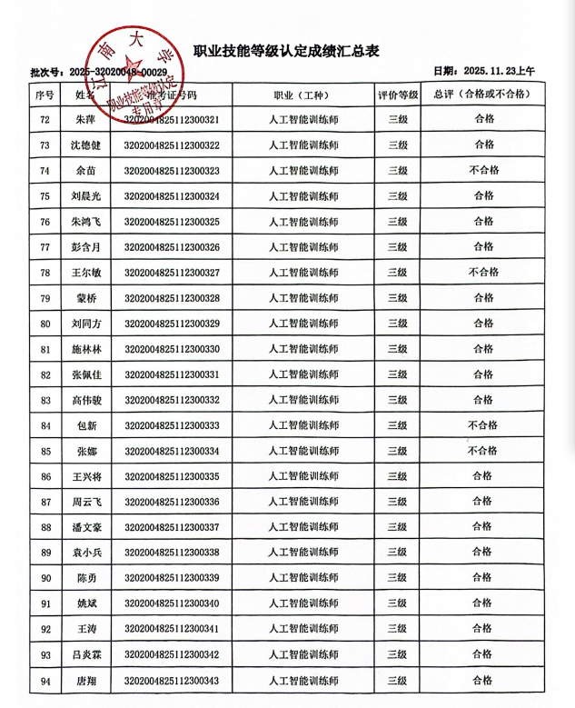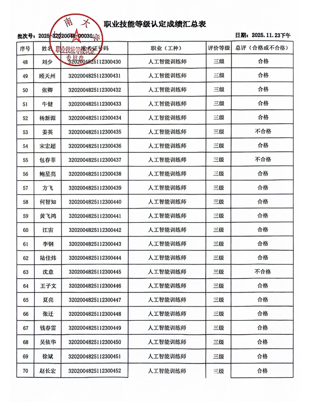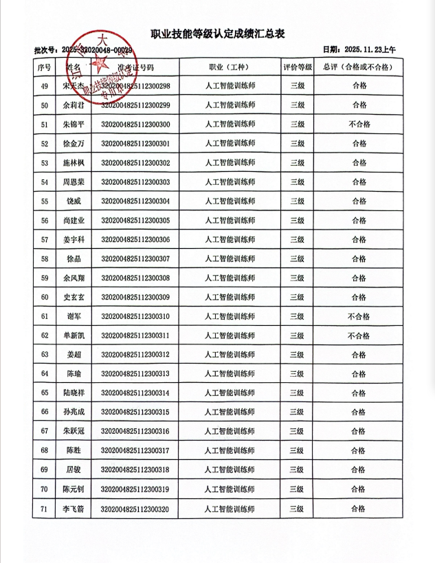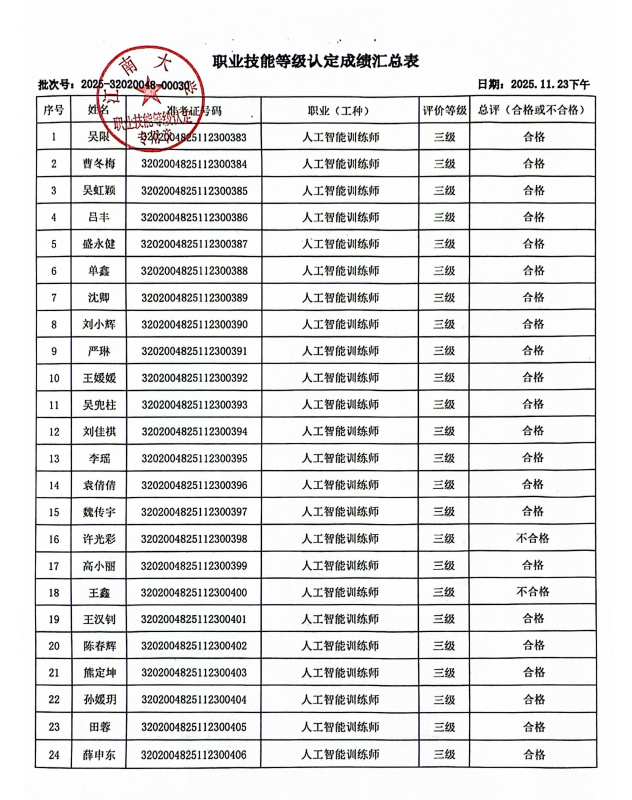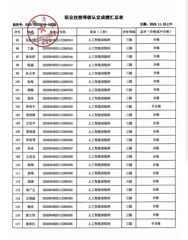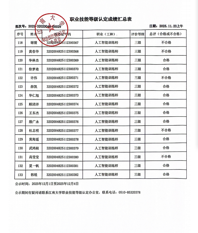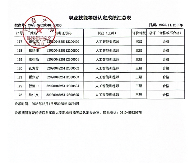2025年江南大学职业技能等级认定结果公示(00029次,00030次)